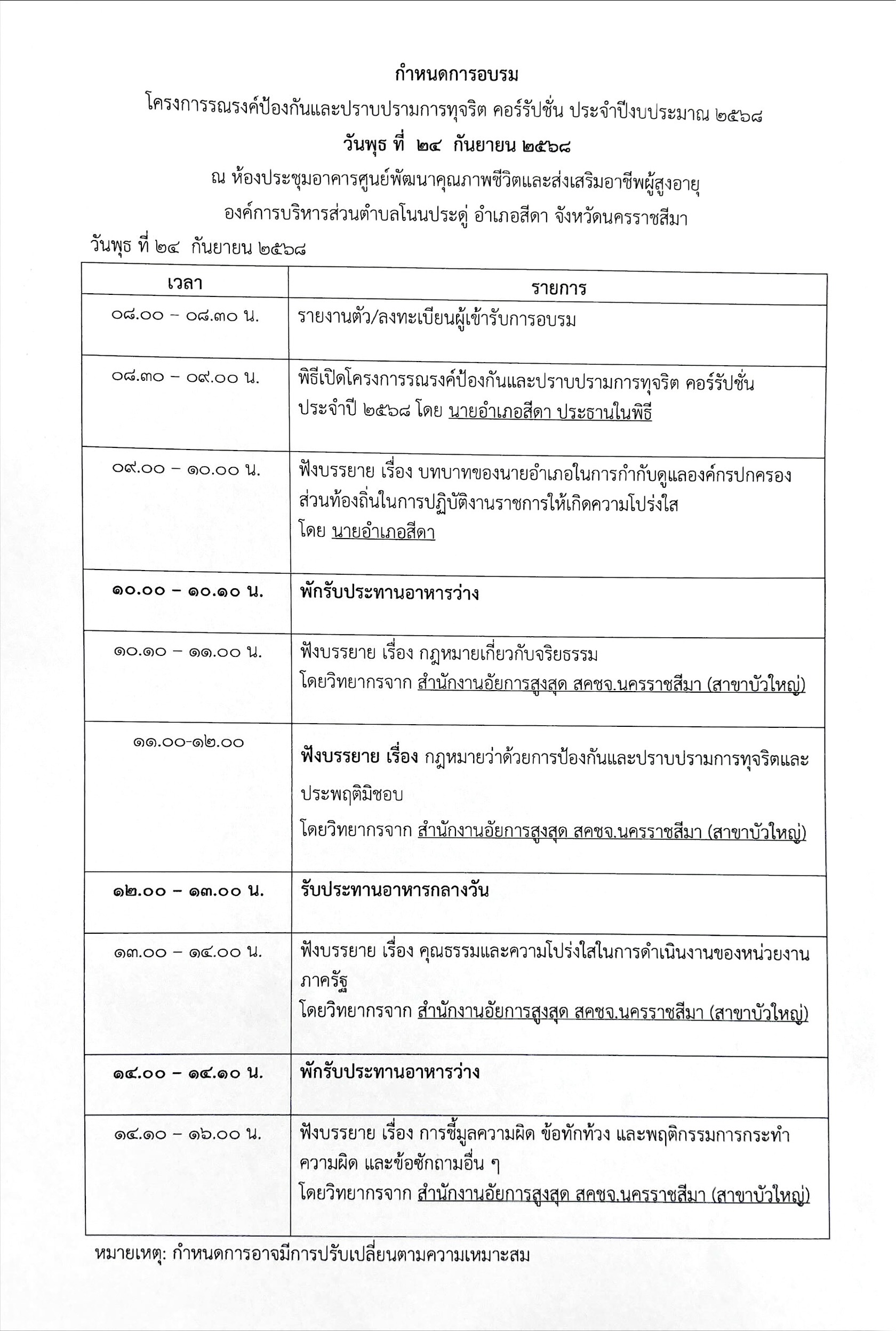 ขอเชิญเข้าร่วมโครงการรณรงค์ป้องกันและปราบปรามการทุจริต คอร์รัปชั่น ประจำปีงบประมาณ 2568