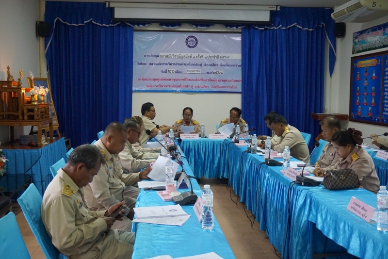 โดยมี นายเฉลิมเกียรติ์ ควันพิมาย นายก อบต. พร้อมด้วย คณะผู้บริหาร หัวหน้าส่วนราชการ ผู้ใหญ่บ้าน ผู้นำชุมชน เข้าร่วมประชุม