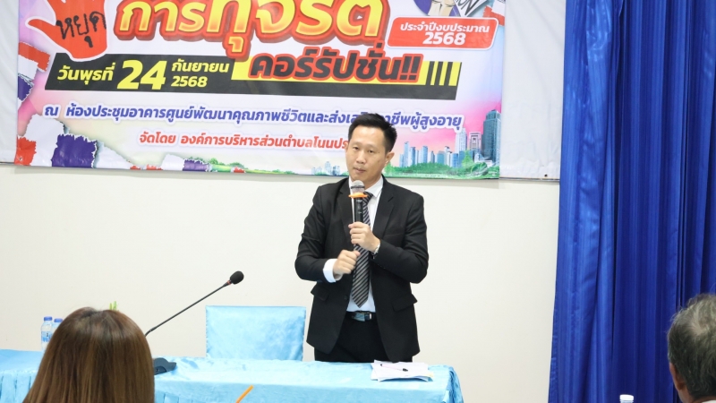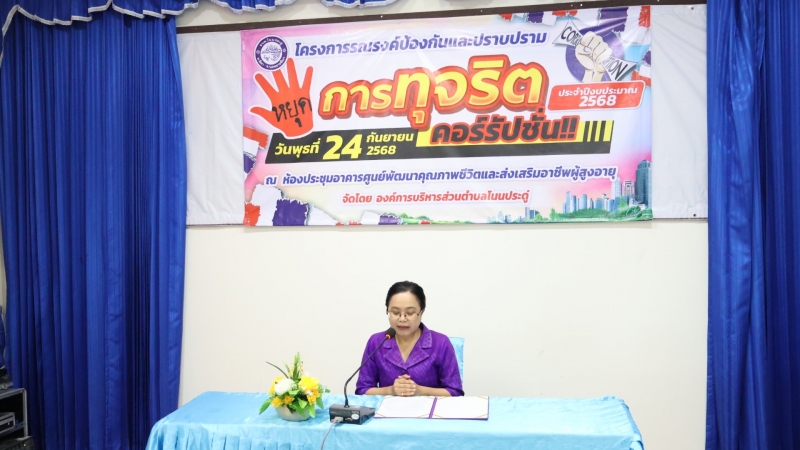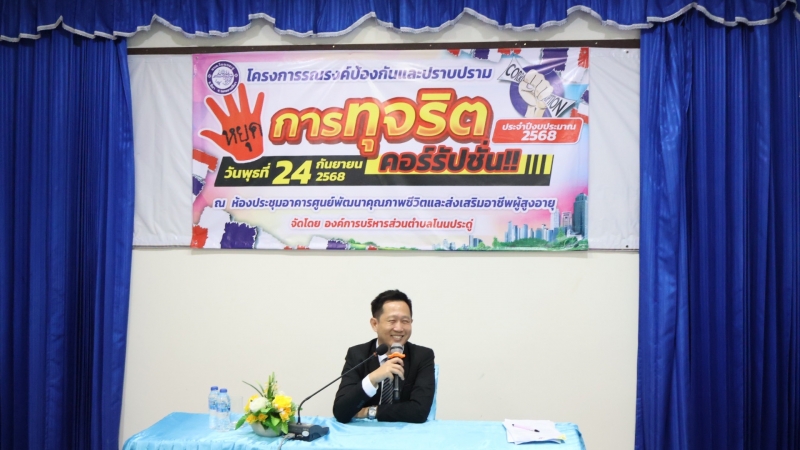 ภายในกิจกรรมมีการบรรยายให้ความรู้ โดยนายก้องวิทย์ วัชราภรณ์ อัยการ และนายมาโนช ชินเกียรติกุล นิติกร เพื่อสร้างความรู้ ความเข้าใจ และตระหนักถึงโทษและผลกระทบของการทุจริตคอร์รัปชั่น ตลอดจนส่งเสริมคุณธรรม จริยธรรม และความโปร่งใสในการปฏิบัติงานทั้งในระดับบุคคลและองค์กร ณ ห้องประชุมอาคารศูนย์พัฒนาคุณภาพชีวิตและส่งเสริมอาชีพผู้สูงอายุองค์การบริหารส่วนตำบลโนนประดู่ อำเภอสีดา จังหวัดนครราชสีมา