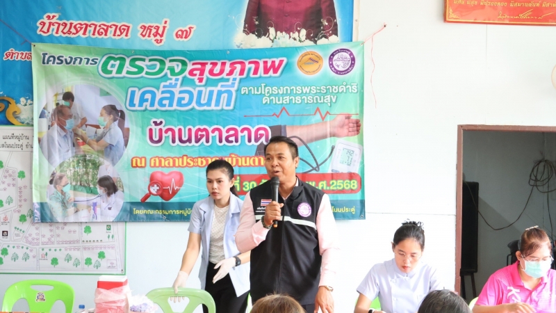 จัดโครงตรวจสุขภาพเคลื่อนที่ตามโครงการพระราชดำริด้านสาธารณสุข ประจำปีงบประมาณ 2568 โดย นายเฉลิมเกียรติ์ ควันพิมาย นายก อบต. เป็นประธานกล่าวเปิดโครงการฯ พร้อมด้วยวิทยากรบรรยายให้ความรู้ โดย นางสาวสุคนธ์ทิพย์ มีภู่ ผอ.รพ.สต.โนนประดู่ บรรยายให้ความรู้ด้านการดูแลสุขภาพ การป้องกันโรค และการส่งเสริมสุขภาพขั้นพื้นฐานแก่ประชาชนในพื้นที่ ทั้งยังมีการให้บริการตรวจสุขภาพเบื้องต้น ณ ศาลาประชาคมบ้านตาลาด หมู่ที่ 7 ตำบลโนนประดู่ อำเภอสีดา จังหวัดนครราชสีมา