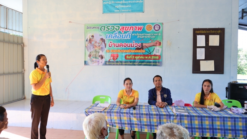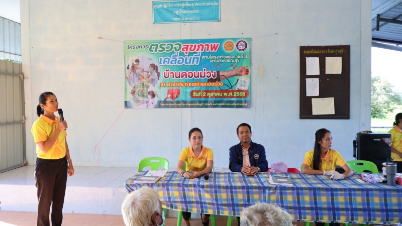 วันที่ 2 ตุลาคม 2568 เวลา 09.00 น. อบต.โนนประดู่ ร่วมกับ คณะกรรมการหมู่บ้าน หมู่ที่ 1 บ้านดอนม่วง จัดโครงตรวจสุขภาพเคลื่อนที่ตามโครงการพระราชดำริด้านสาธารณสุข โดย นายเฉลิมเกียรติ์ ควันพิมาย นายก อบต. เป็นประธานกล่าวเปิดโครงการฯ พร้อมด้วยวิทยากรบรรยายให้ความรู้ โดย นางสาวสุคนธ์ทิพย์ มีภู่ ผอ.รพ.สต.โนนประดู่ บรรยายให้ความรู้ด้านการดูแลสุขภาพ การป้องกันโรค และการส่งเสริมสุขภาพขั้นพื้นฐานแก่ประชาชนในพื้นที่ ทั้งยังมีการให้บริการตรวจสุขภาพเบื้องต้น ณ ศาลาประชาคมบ้านดอนม่วง หมู่ที่ 1 ตำบลโนนประดู่ อำเภอสีดา จังหวัดนครราชสีมา