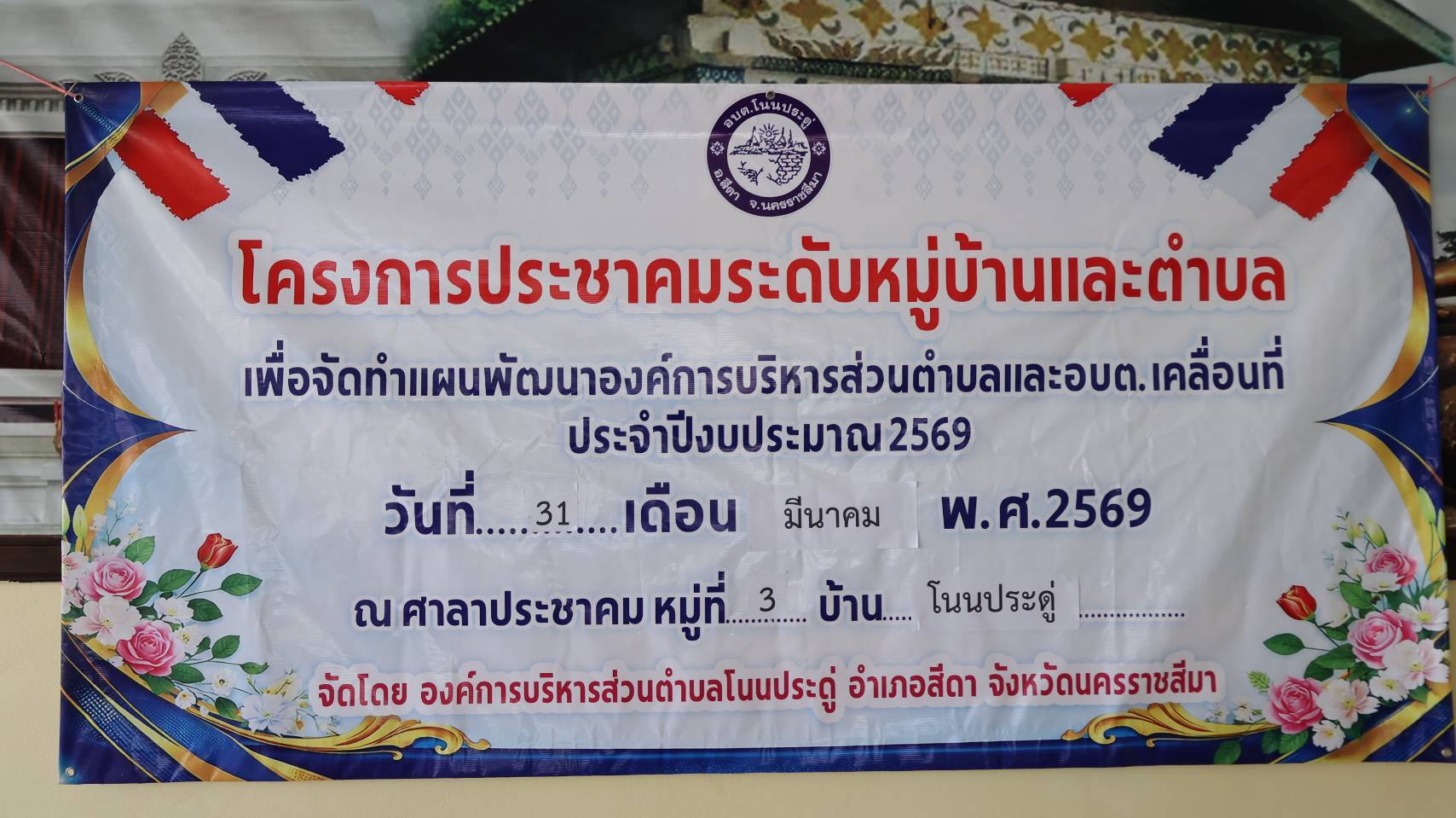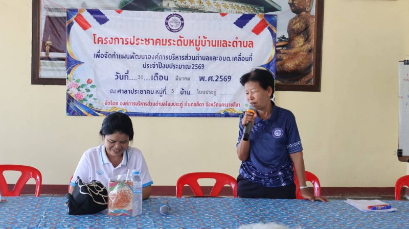 วันที่ 31 มีนาคม 2569 เวลา 09.30 น. อบต.โนนประดู่ โดย นายเฉลิมเกียรติ ควันพิมาย นายก อบต. มอบหมายให้ นายปิยะ คิดการ รองนายก อบต. จัดโครงการประชาคมระดับหมู่บ้านและตำบลเพื่อจัดทำแผนพัฒนาองค์การบริหารส่วนตำบลและ อบต.เคลื่อนที่ เพื่อจัดทำแผนพัฒนาท้องถิ่น พ.ศ. 2566 -2570 แก้ไขเพิ่มเติมครั้งที่ 1 ประจำปีงบประมาณ 2569 ณ ศาลาประชาคมบ้านโนนประดู่ หมู่ที่ 3 ตำบลโนนประดู่ อำเภอสีดา จังหวัดนครราชสีมา