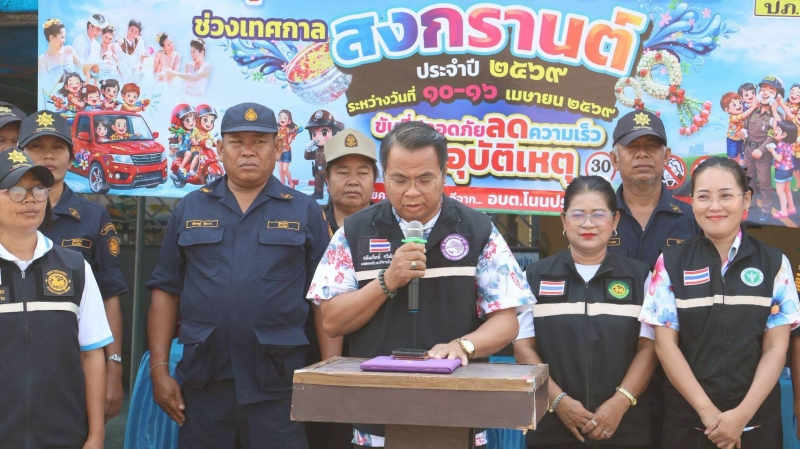 นำโดย นายเฉลิมเกียรติ์ ควันพิมาย นายก อบต. พร้อมด้วย กำนัน ผู้ใหญ่บ้าน สมาชิกสภา อบต. และผู้นำชุมชน ร่วมเปิดศูนย์ปฏิบัติการป้องกันและลดอุบัติเหตุทางถนน และจุดบริการประชาชน ณ บริเวณศาลาประชาคมบ้านโนนประดู่ หมู่ที่ 3 ต.โนนประดู่ อ.สีดา จ.นครราชสีมา ภายใต้โครงการป้องกันและลดอุบัติเหตุทางถนนช่วงเทศกาล ประจำปีงบประมาณ 2569 เพื่อดูแลความปลอดภัยและอำนวยความสะดวกแก่ประชาชนที่เดินทางในช่วงเทศกาลสงกรานต์ ระหว่างวันที่ 10 - 16 เมษายน 2569