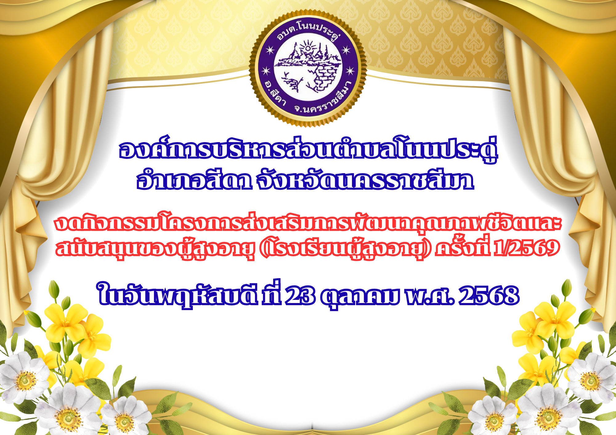 ประชาสัมพันธ์ อบต.โนนประดู่ ร่วมกับ สภาวัฒนธรรมตำบลโนนประดู่ ขอเชิญ ร่วมงานประเพณีลอยกระทง ประจำปี 2568
