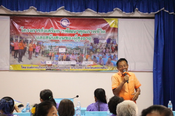 วันที่ 1 กุมภาพันธ์ 2567 เวลา 08.30 น. จัดโครงการส่งเสริมการพัฒนาคุณภาพชีวิตและสนับสนุนของผู้สูงอายุ (โรงเรียนผู้สูงอายุ) ครั้งที่ 13/2567 โดย นายเฉลิมเกียรติ์ ควันพิมาย นายก อบต. มอบหมายให้ นายประยงค์ เวชยันต์ รองนายก อบต. เป็นประธานเปิดโครงการฯ พร้อมด้วยนางเจียม ประจงค์ เป็นวิทยากรกิจกรรมการสานกระด้ง และกิจกรรมออกกำลังกาย กิจกรรมนันทนาการ เพื่อเป็นการผ่อนคลายความเครียด พร้อมทั้งให้ความบันเทิงแก่นักเรียนผู้สูงอายุตำบลโนนประดู่ ณ ห้องประชุมอาคารศูนย์พัฒนาคุณภาพชีวิตและส่งเสริมอาชีพผู้สูงอายุองค์การบริหารส่วนตำบลโนนประดู่ อำเภอสีดา จังหวัดนครราชสีมา