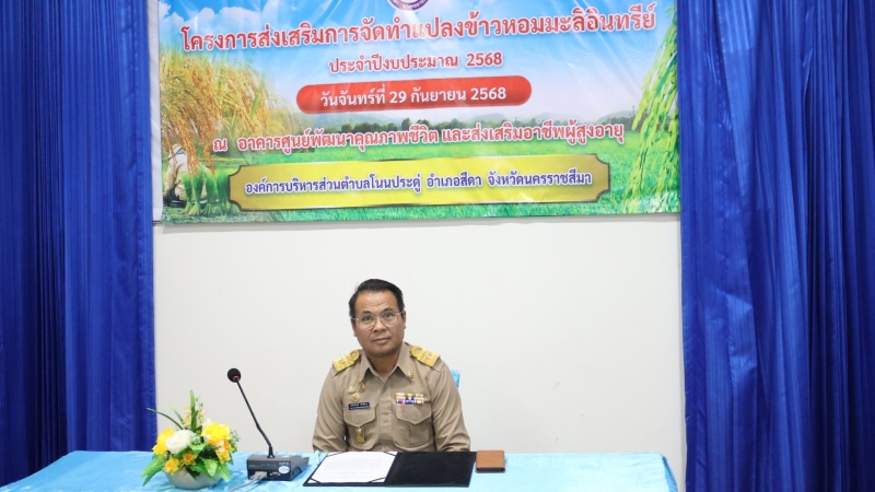 จัดโครงการส่งเสริมการจัดทำแปลงข้าวหอมมะลิอินทรีย์ ประจำปีงบประมาณ 2568 พร้อมด้วย เจ้าหน้าที่เกษตรอำเภอสีดา บรรยายให้ความรู้และสาธิตการทำสารชีวภัณฑ์ที่ใช้กำจัดโรคพืช เพื่อให้เกษตรกรในพื้นที่สามารถนำไปปรับใช้ได้อย่างเหมาะสมและสร้างความเข้าใจและเพิ่มศักยภาพแก่เกษตรกรในพื้นที่ ณ อาคารศูนย์พัฒนาคุณภาพชีวิตและส่งเสริมอาชีพผู้สูงอายุตำบลโนนประดู่ อำเภอสีดา จังหวัดนครราชสีมา