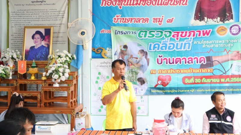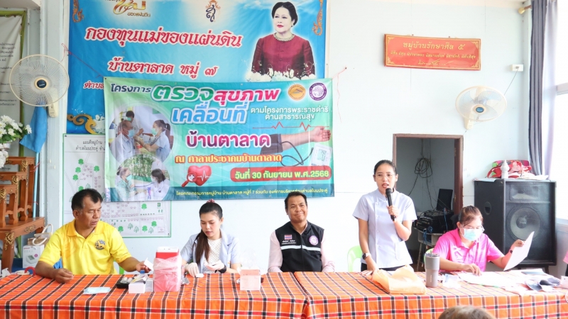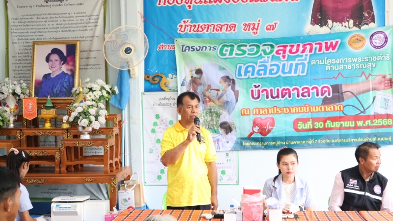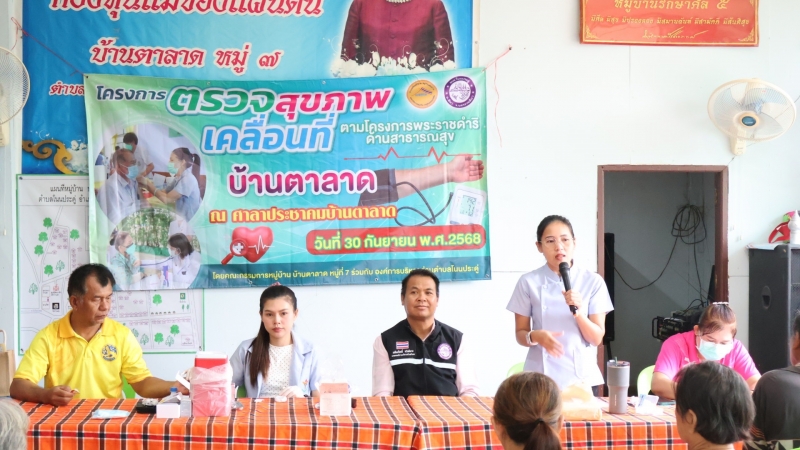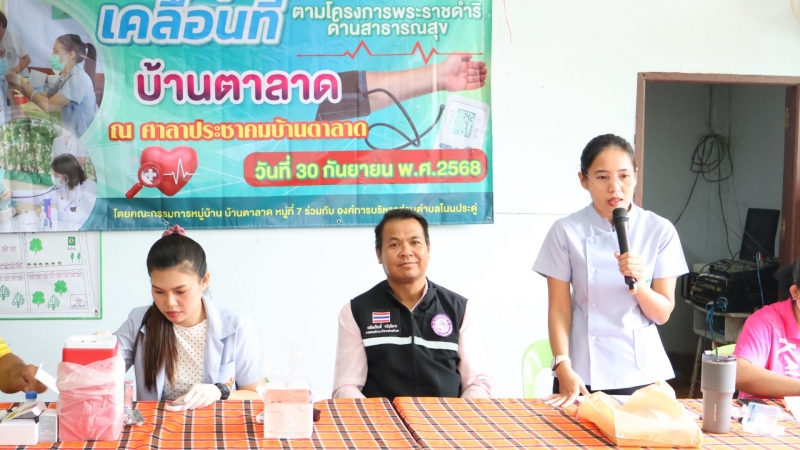 จัดโครงตรวจสุขภาพเคลื่อนที่ตามโครงการพระราชดำริด้านสาธารณสุข ประจำปีงบประมาณ 2568 โดย นายเฉลิมเกียรติ์ ควันพิมาย นายก อบต. เป็นประธานกล่าวเปิดโครงการฯ พร้อมด้วยวิทยากรบรรยายให้ความรู้ โดย นางสาวสุคนธ์ทิพย์ มีภู่ ผอ.รพ.สต.โนนประดู่ บรรยายให้ความรู้ด้านการดูแลสุขภาพ การป้องกันโรค และการส่งเสริมสุขภาพขั้นพื้นฐานแก่ประชาชนในพื้นที่ ทั้งยังมีการให้บริการตรวจสุขภาพเบื้องต้น ณ ศาลาประชาคมบ้านตาลาด หมู่ที่ 7 ตำบลโนนประดู่ อำเภอสีดา จังหวัดนครราชสีมา