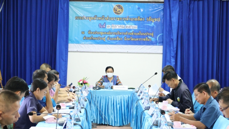 โดย นายเฉลิมเกียรติ์ ควันพิมาย นายก อบต. เข้าร่วมการประชุมหัวหน้าส่วนราชการ(สัญจร) คณะกรรมการบริหารงานอำเภอแบบบูรณาการ (กบอ.) และกรรมการศูนย์ปฏิบัติการป้องกันและปราบปรามยาเสพติด ประจำเดือนตุลาคม 2568 โดยมี ร.ต.อ.หญิง อรุณี อินทรมณี นายอำเภอสีดา เป็นประธานในที่ประชุม เพื่อชี้แจงข้อราชการ นโยบายสำคัญของรัฐบาลและนโยบายของผู้ว่าราชการจังหวัดนครราชสีมา โดยมีหัวหน้าส่วนราชการ สมาชิกองค์การบริหารส่วนจังหวัดนครราชสีมา เขตอำเภอสีดา ผู้บริหารท้องถิ่น กรรมการธรรมาภิบาลจังหวัดนครราชสีมา ประจำอำเภอสีดา เข้าร่วมประชุมในครั้งนี้ด้วย ณ อาคารศูนย์พัฒนาคุณภาพชีวิตและส่งเสริมอาชีพผู้สูงอายุตำบลโนนประดู่ อำเภอสีดา จังหวัดนครราชสีมา