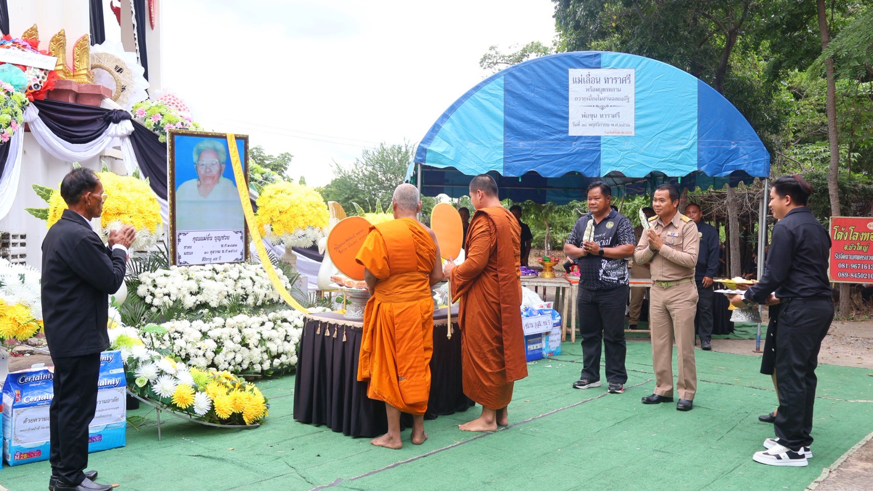 กองทุนสวัสดิการฌาปนกิจสงเคราะห์ตำบลโนนประดู่ ผู้มอบโดย นายสมชาย เพียนอก มอบเงินสงเคราะห์แก่ทายาท จากการเสียชีวิตของนางจั่น บุญช่วย หมู่ 5 บ้านหนองสะแก และได้ร่วมทอดผ้าไตรรองบังสุกุลและวางดอกไม้จันทน์ ในงานพิธีฌาปนกิจศพ ณ วัดโนนประดู่ ตำบลโนนประดู่ อำเภอสีดา จังหวัดนครราชสีมา
