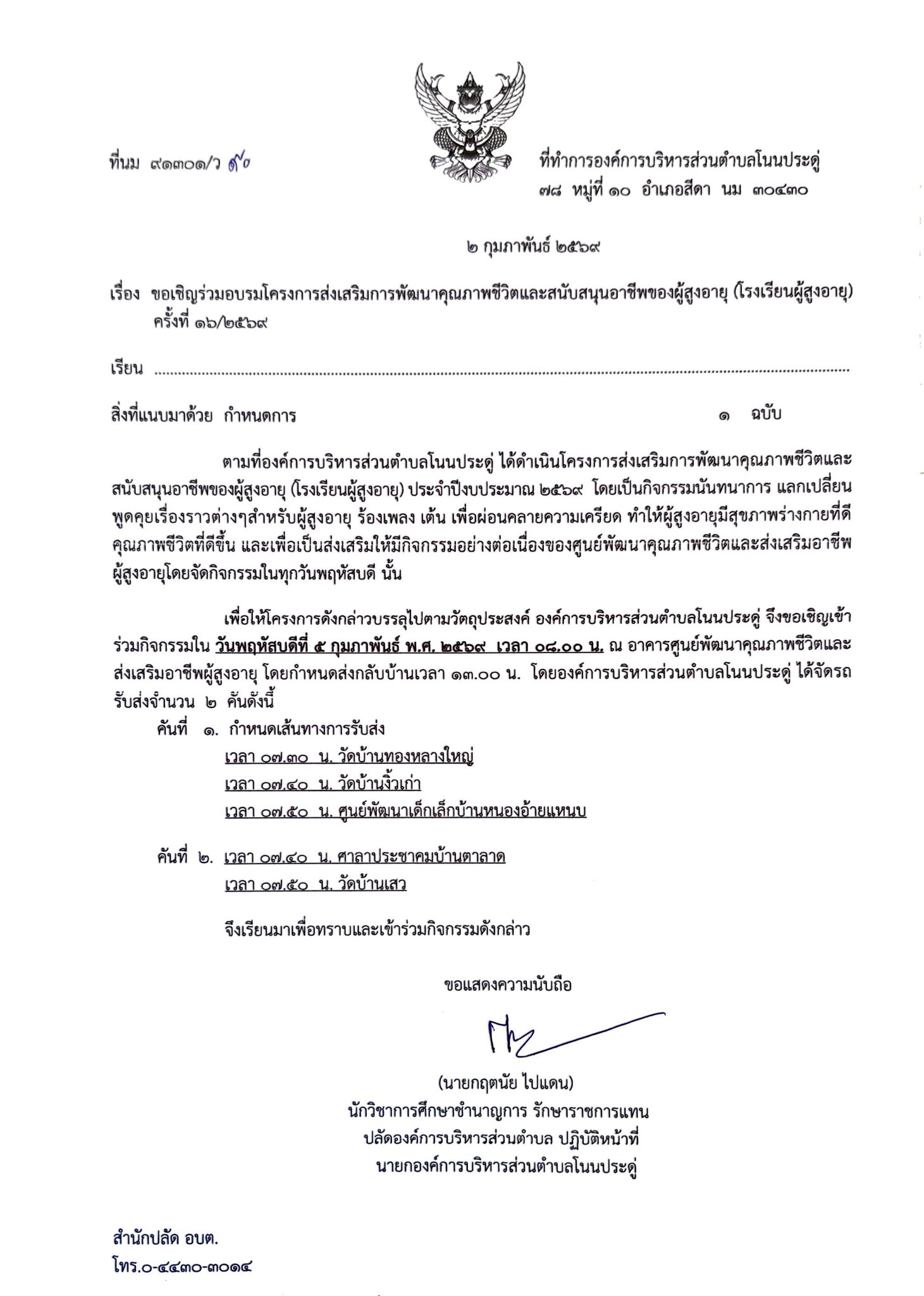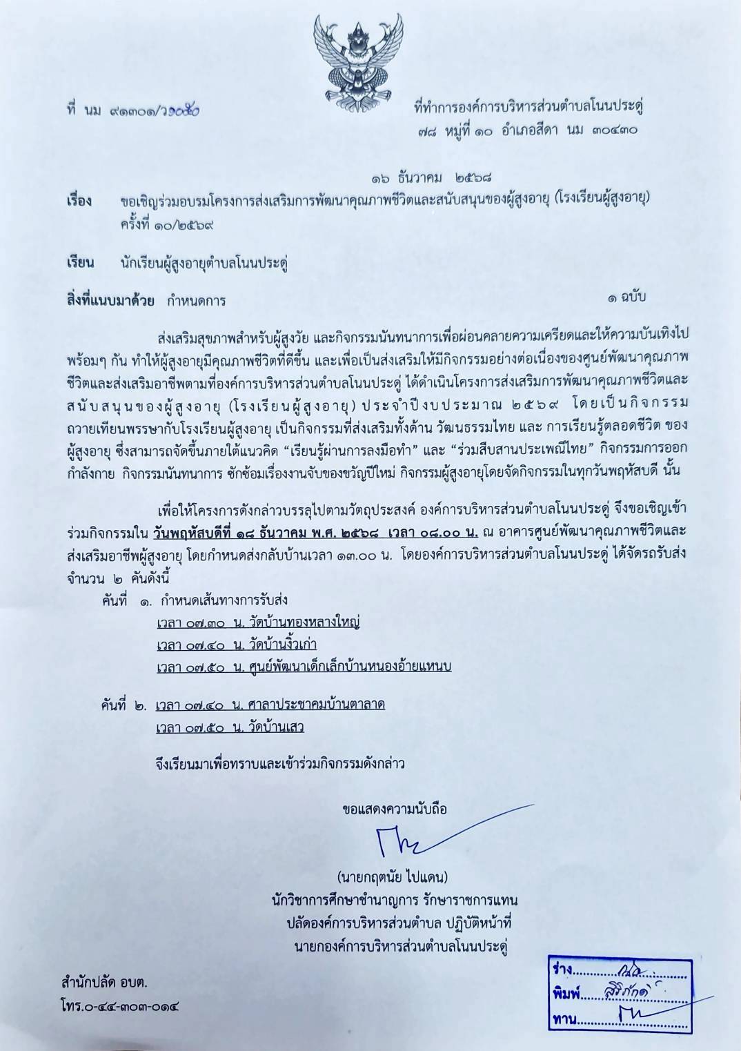 ขอเชิญเข้าร่วมโครงการส่งเสริมการพัฒนาคุณภาพชีวิตและสนับสนุนอาชีพของผู้สูงอายุ (โรงเรียนผู้สูงอายุ) ครั้งที่ 16/2569 |