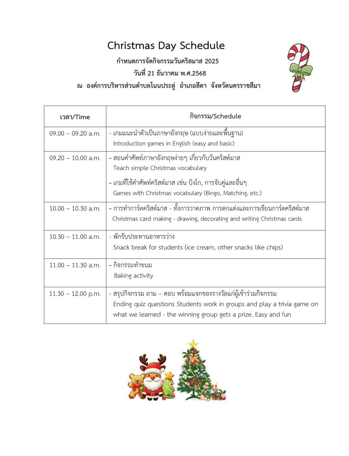 ประชาสัมพันธ์ อบต.โนนประดู่ ร่วมกับ หน่วยสันติภาพสหรัฐอเมริกา ประเทศไทย ขอเชิญคณะครูและนักเรียนชั้นประถมศึกษาปีที่ 4-6 ในพื้นที่ตำบลโนนประดู่ เข้าร่วมกิจกรรมวันคริสต์มาส |