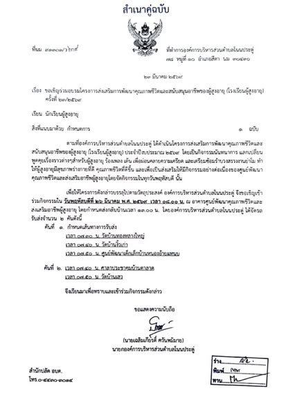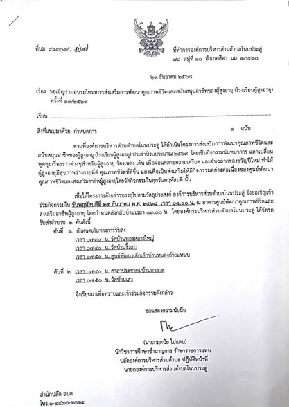 ขอเชิญเข้าร่วมโครงการส่งเสริมการพัฒนาคุณภาพชีวิตและสนับสนุนอาชีพของผู้สูงอายุ (โรงเรียนผู้สูงอายุ) ครั้งที่ 21/2569 |