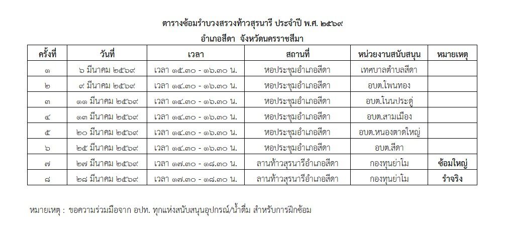 ขอเชิญนางรำบวงสรวงท้าวสุรนารีตำบลโนนประดู่ ร่วมฝึกซ้อมรำบวงสรวง โดยนางรำต้นแบบของอำเภอสีดา |