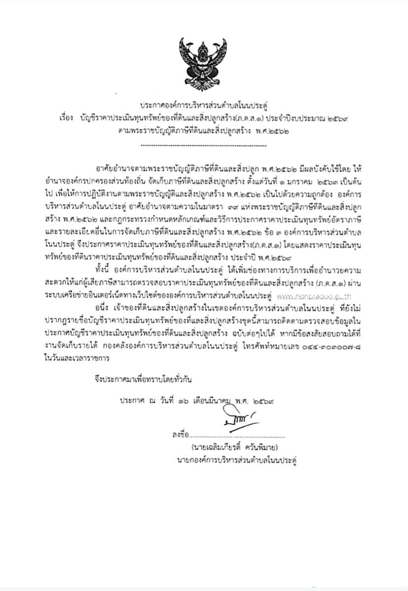 เรื่อง บัญชีราคาประเมินทุนทรัพย์ของที่ดินและสิ่งปลูกสร้าง (ภ.ด.ส.1) ประจำปี 2569 |