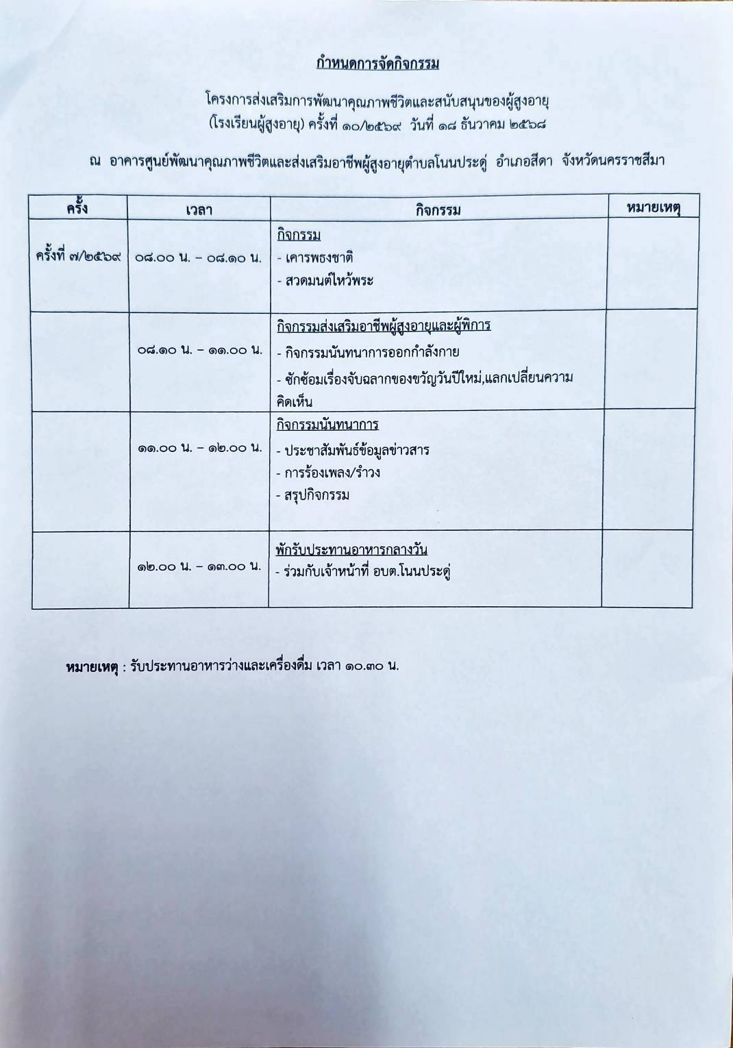 ขอเชิญเข้าร่วมโครงการส่งเสริมการพัฒนาคุณภาพชีวิตและสนับสนุนอาชีพของผู้สูงอายุ (โรงเรียนผู้สูงอายุ) ครั้งที่ 10/2569 ในวันพฤหัสบดีที่ 18 ธันวาคม พ.ศ.2568 ณ อาคารศูนย์พัฒนาคุณภาพชีวิตและส่งเสริมผู้สูงอายุ รายละเอียดตามกำหนดการที่แนบมาพร้อมนี้